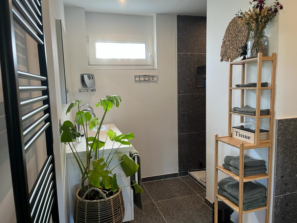 Daarnaast is er een luxe badkamer van 9m2. Deze is voorzien van een toilet, een wastafel met twee kranen en een inloopdouche van 160x90cm.